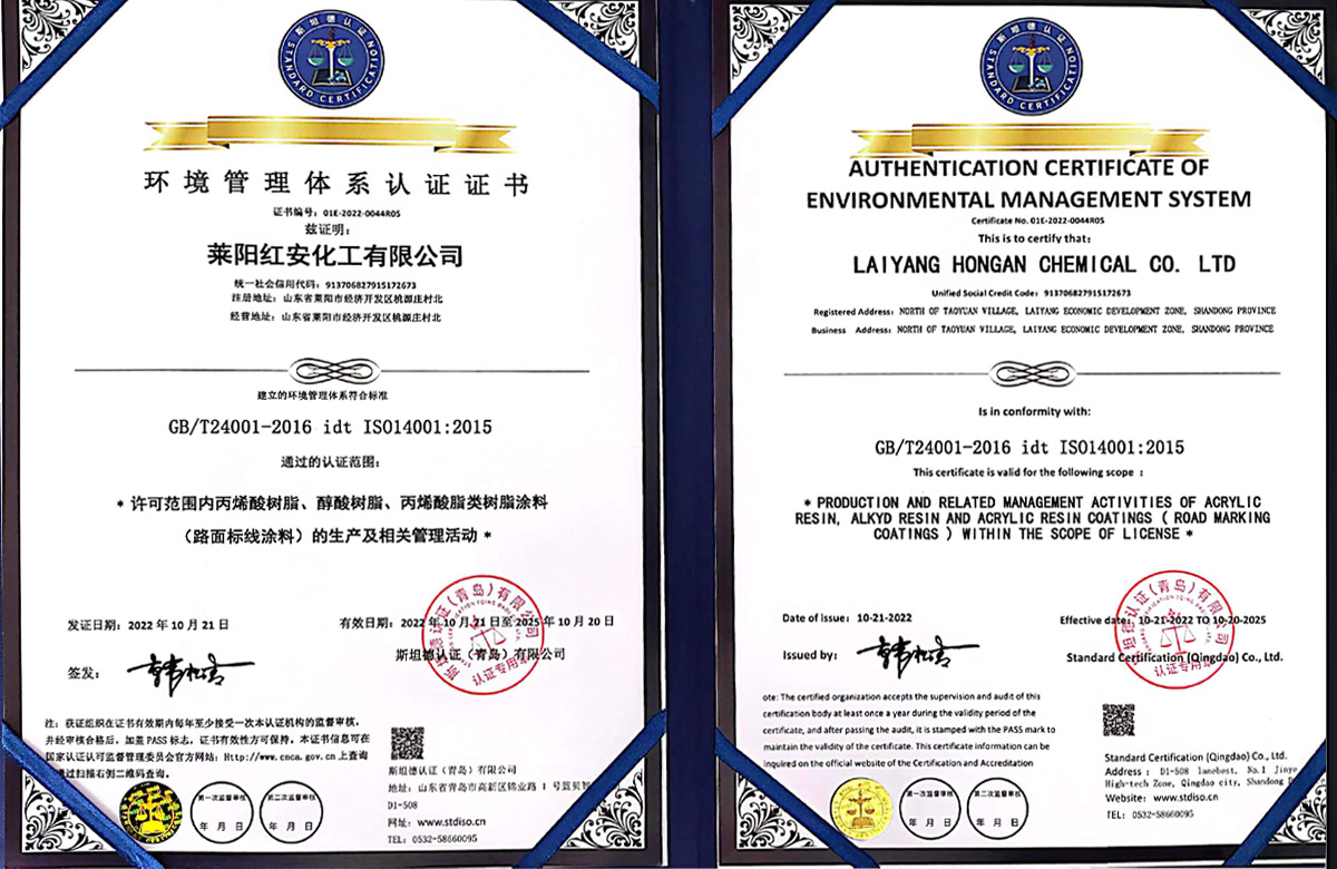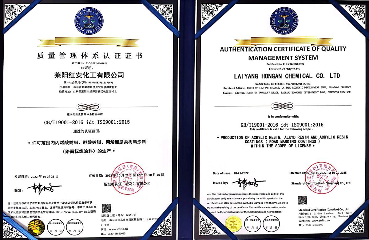 紅安化工經(jīng)過近二十年的打造和積淀,現(xiàn)已建成了一家專業(yè)研制生產(chǎn)涂料合成樹脂的綜合型工廠,位于山東省半島的腹地--萊陽市。公司已通過了三體系認證,即ISO9000質(zhì)量管理體系認證和環(huán)境、職業(yè)健康安全管理體系認證,并獲得了六項國家發(fā)明專利,八項實用新型專利;19年榮獲山東省高新企業(yè)稱號,22年通過了復審;22年榮獲山東省瞪羚企業(yè)稱謂,還有其他一些榮譽稱號不再一一敘說。 公司現(xiàn)有樹脂合成反應釜29套,各類樹脂年生產(chǎn)能力約8萬噸,具有完善的檢測儀器和應用服務條件。